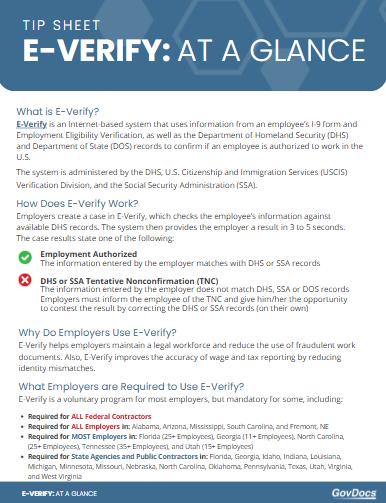 Contrary to what many believe, E-Verify does not actually verify the immigration status of an individual. The E-Verify system compares information from an individual’s I-9 form with SSA and DHS records to verify their employment eligibility to work in the United States.