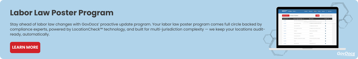 Updated September 2025; Copyright © 2025 GovDocs, Inc. GovDocs is a registered trademark of GovDocs, Inc. This labor law poster glossary is intended for market awareness only. It is not to be used for legal advice or counsel.