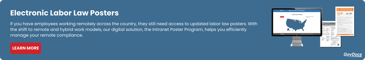 The GovDocs Poster Store simplifies posting compliance for employers with less than 30 locations across all industries, offering a variety of posting products to meet your labor law compliance needs.