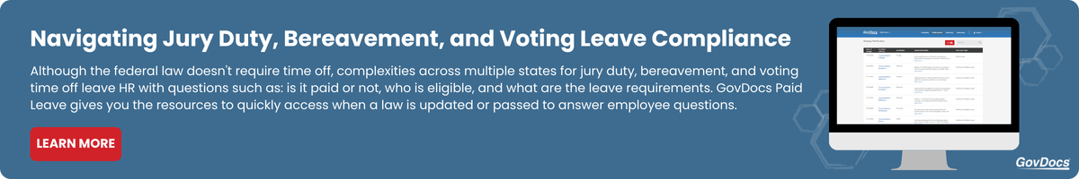 Update September 2025; Copyright © 2025 GovDocs, Inc. GovDocs is a registered trademark of GovDocs, Inc. This paid leave glossary is intended for market awareness only. It is not to be used for legal advice or counsel.